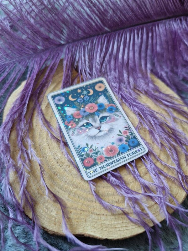 Sticker holographique tarot chat The norwegian forest,