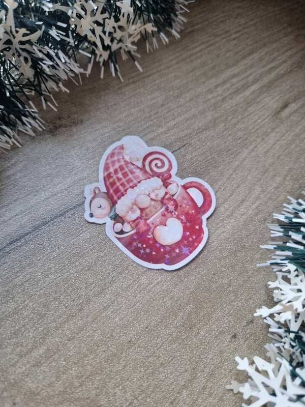 Sticker holographique tasse de Noël,