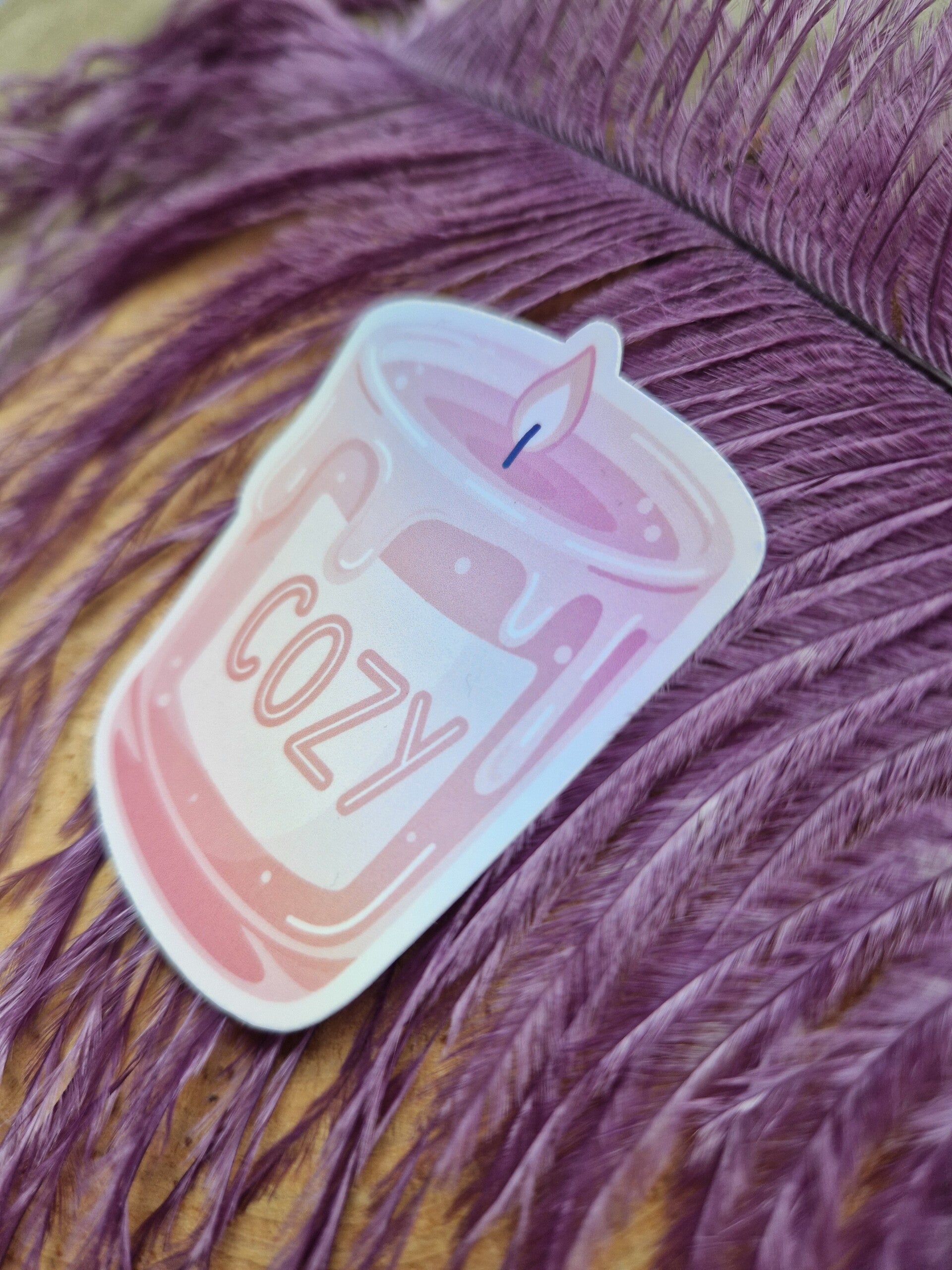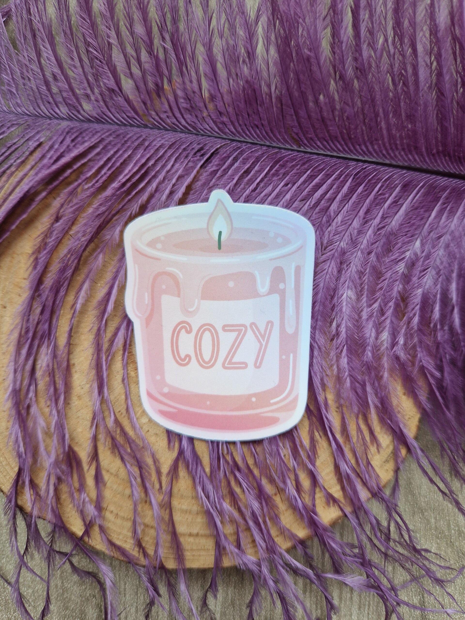 Sticker holographique bougie cozy,