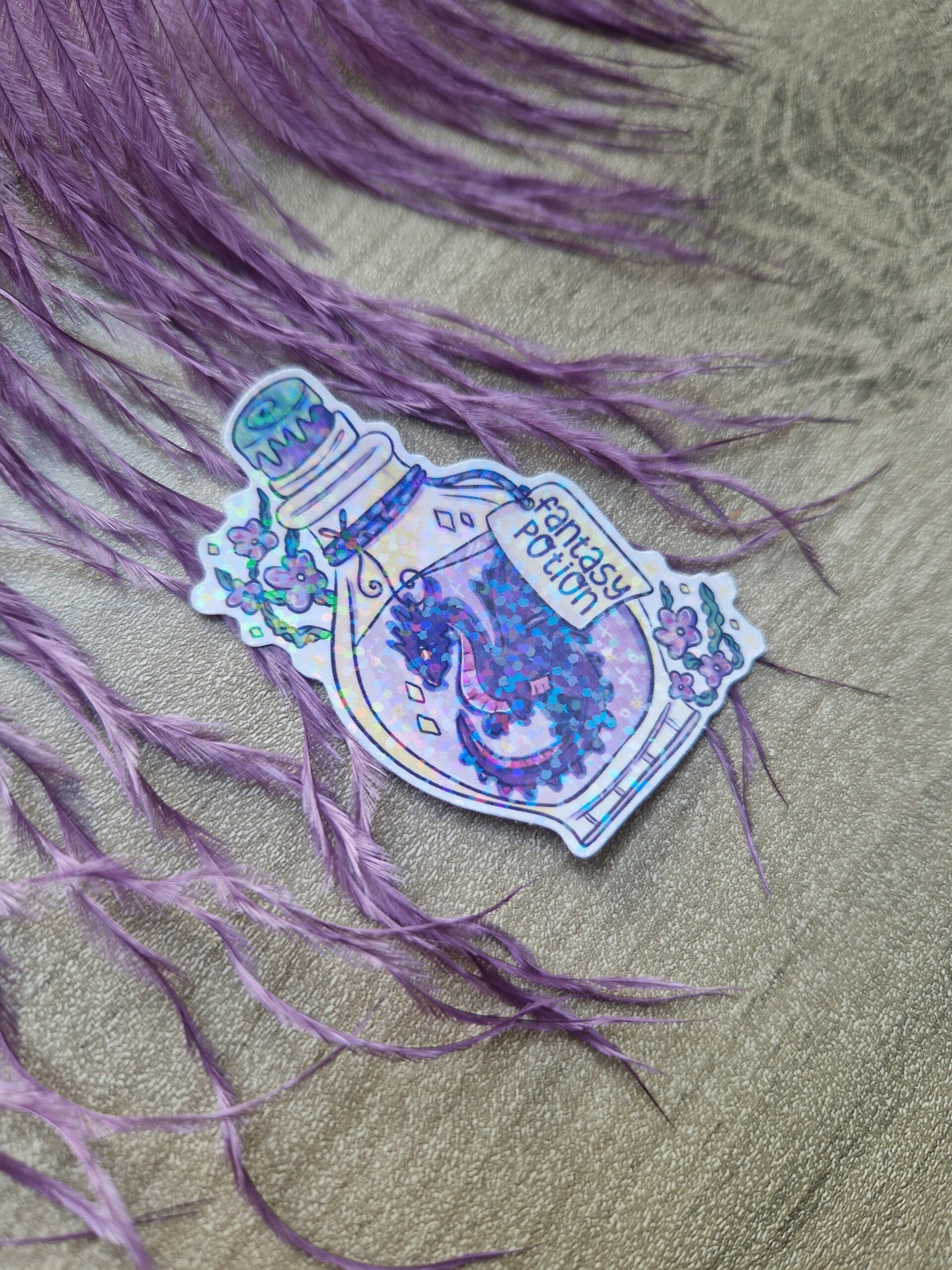 Sticker fait avec du papier autocollant blanc brillant et une feuille holographique.