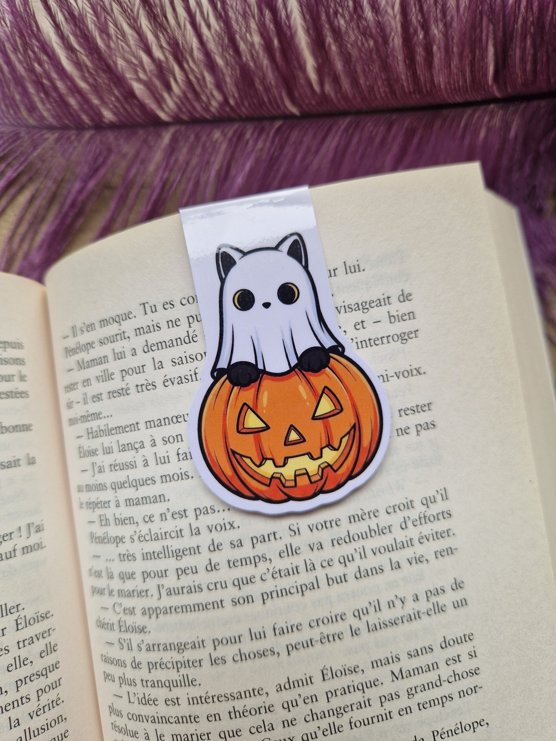 Marque-page magnétique fantôme chat noir halloween,